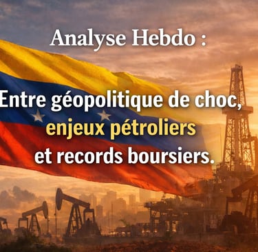 Début 2026 sous haute tension : Venezuela, pétrole, IA, Fed et marchés records. Une analyse hebdomadaire claire pour comprendre les dynamiques clés.